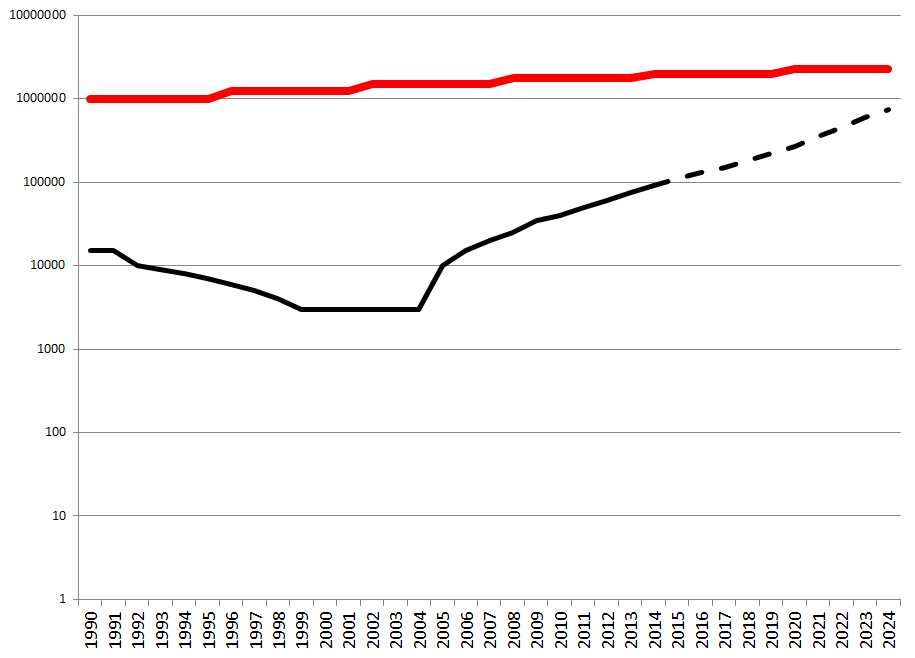 كما شدد ياماموتو على أنّه إذا استمرّت الأوضاع على ما هي عليه فإن سوق الإطارات المستعملة عالمياً لن يعود بإمكانه امتصاص الطلب اللبناني. فبحسب رسمٍ بيانيٍّ بسيط وعند تطبيق نظريّة الإستقراء (extrapolation) المشهود لها بدقتها في عالم الرياضيات يظهر لنا أنّ الطلب اللبناني على الإطارات المستعملة سيتخطّي العرض حوالي العام ٢٠٣٠. عندها سيضطر اللبنانيّون لإحراق إطارات جديدة ممّا قد يشكّل دفعة إيجابيّة لصناعة الدواليب في اليابان والعالم.